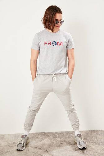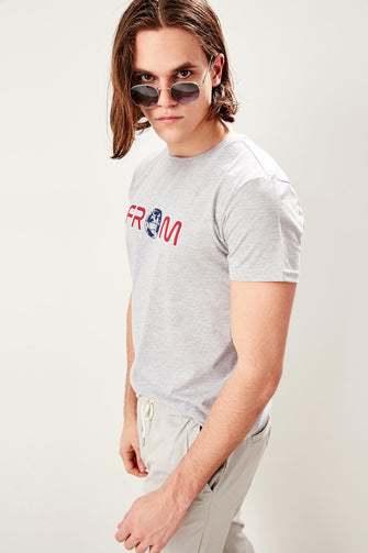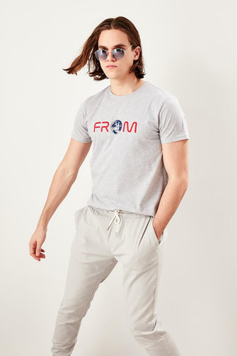 Gray Men 'S Printed Bicycle Neck T Shirt