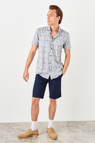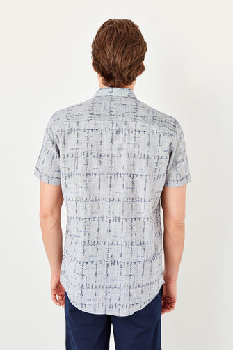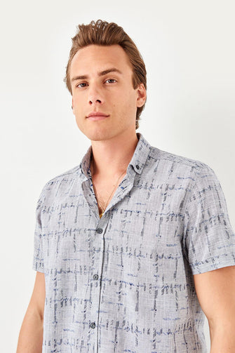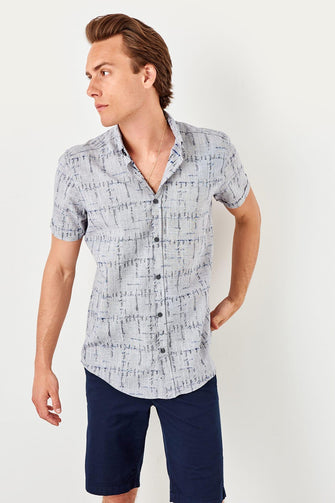 Gray Men 'S Short Sleeve Printed Slim Fit Shirt