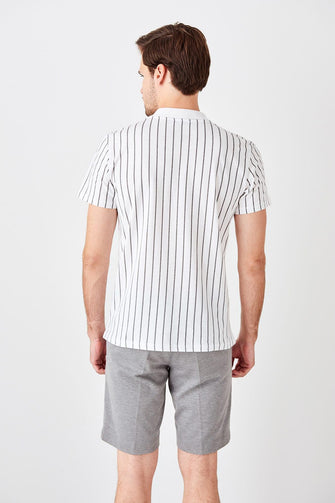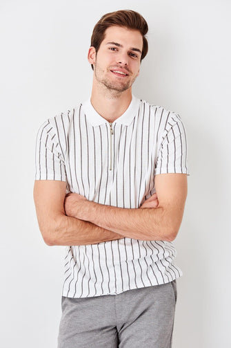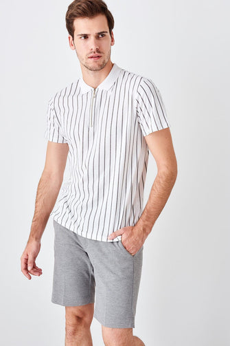 Gray Men 'S Striped Polo Collar Front Zipper New T-shirt