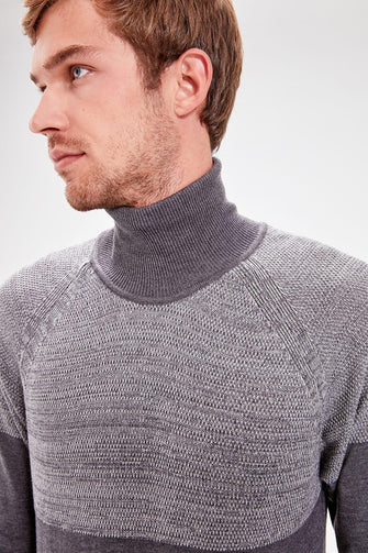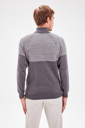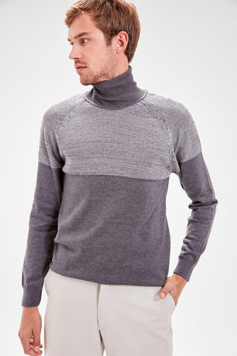 Gray Men 'S Turtleneck Lapel Paneled Knitwear Sweater New