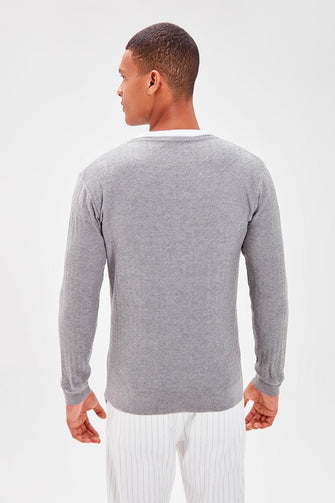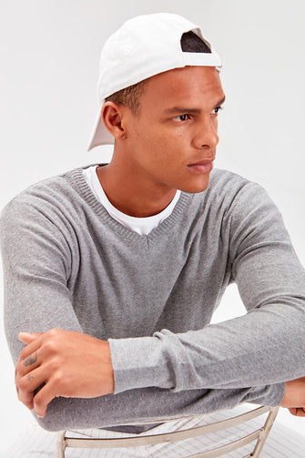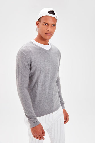 Gray Men 'S V-Neck Textured Knitwear Sweater New
