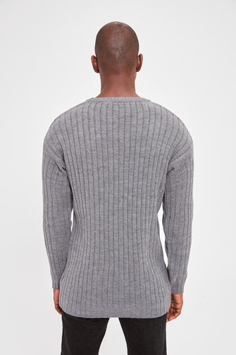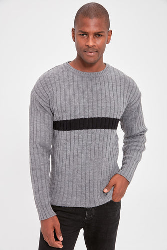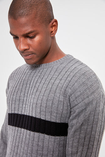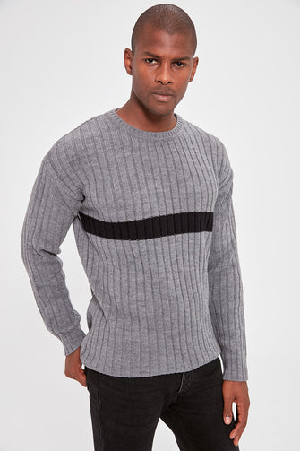 Gray Panelled Men 'S Bike Collar Knitwear Sweater New
