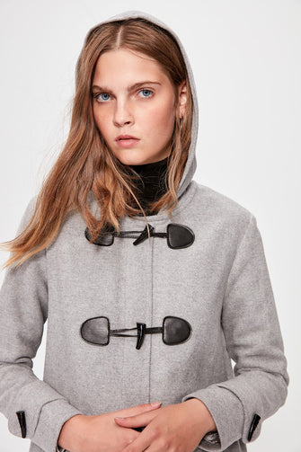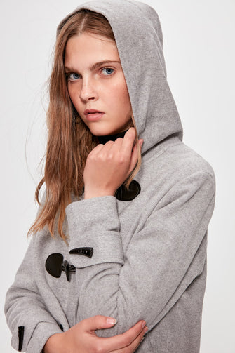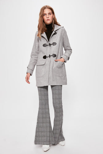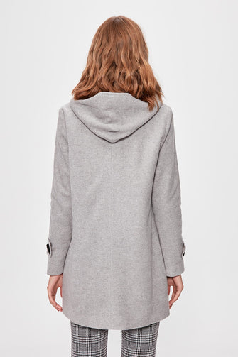 Gray Shepherd Button Hood Detailed Stamp Coat