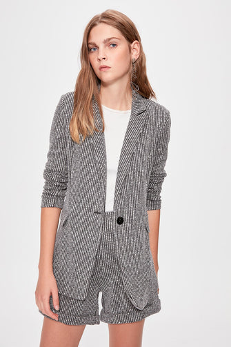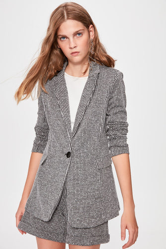 Gray Striped Knitted Jacket
