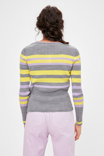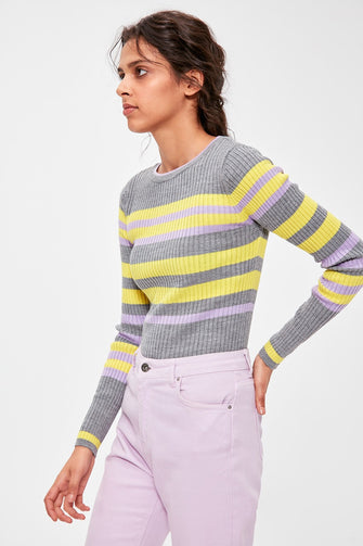 Gray Striped Knitwear Sweater
