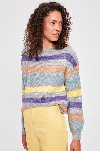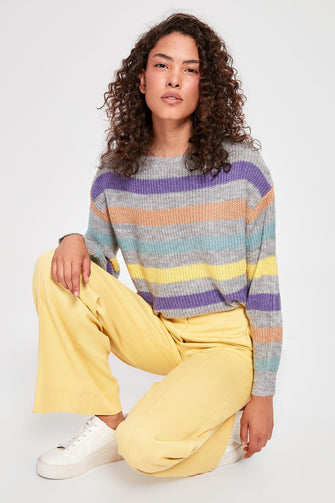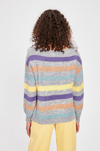 Gray Striped Knitwear Sweater