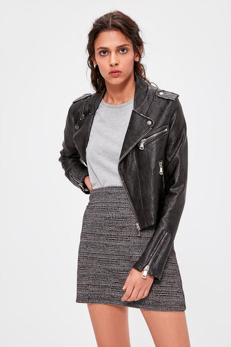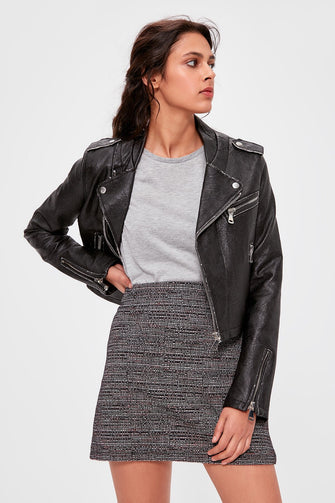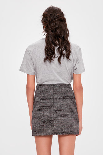 Gray Textured Knit Skirt