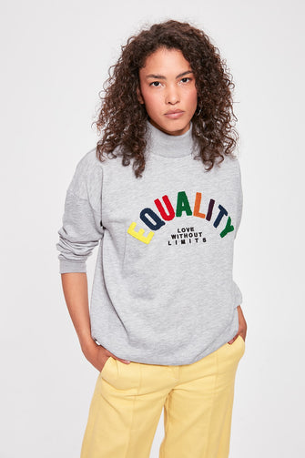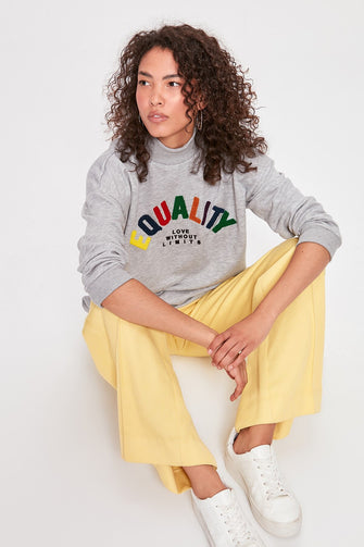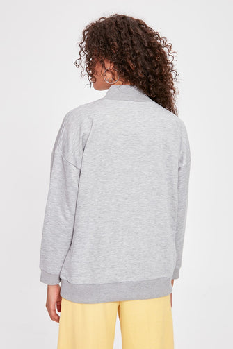 Gray Towel Embroidered Boyfriend Knitted Sweatshirt