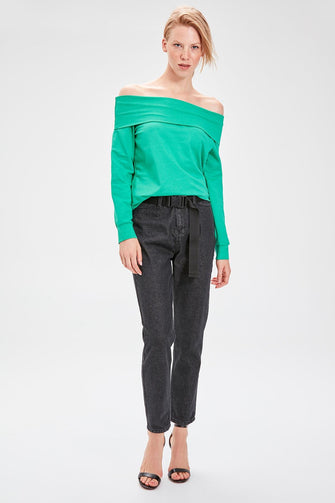 Green Carmen Collar Knitted Sweatshirt
