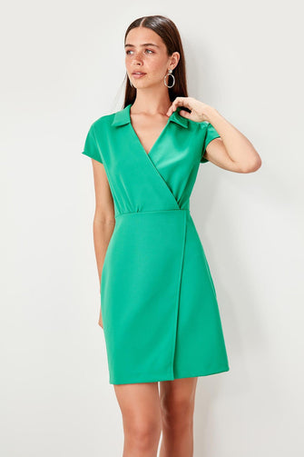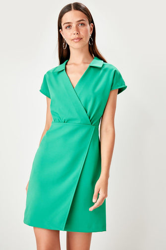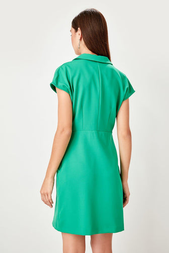 Green Double Breasted Collar Dress