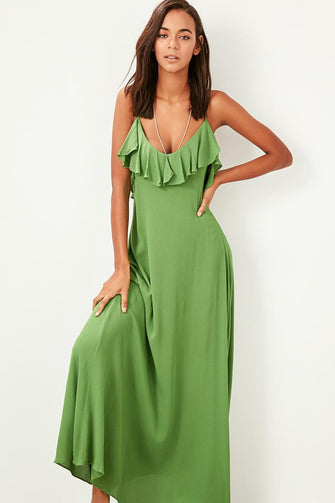 Green Hanging Flywheel Detail Dress