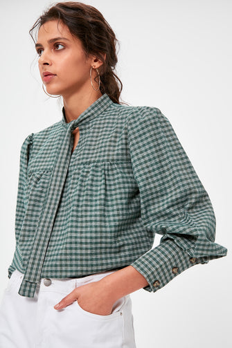 Green Lacing Detailed Bluz