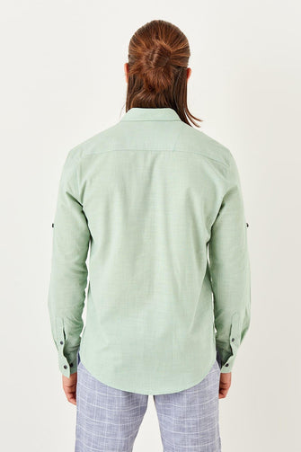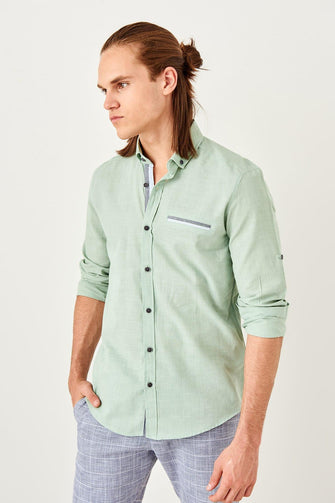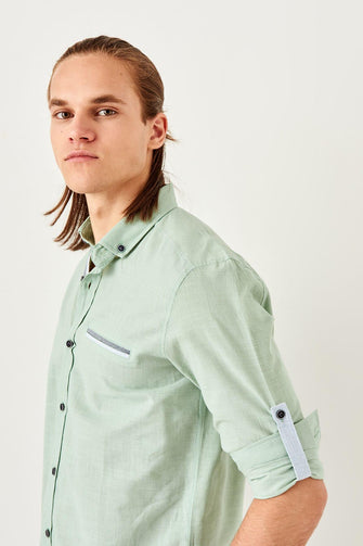 Green Men Fillet Mobile Epaulets Slim Fit Shirt