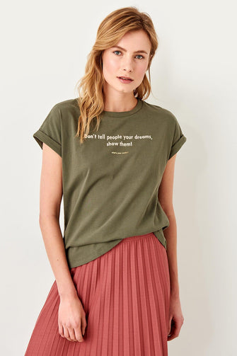 Trendyol Haki Printed Knitted T Shirt TWOSS19XU0022
