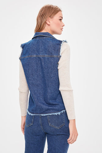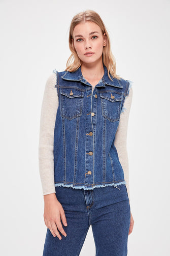 Handles Beige Sweater Denim Jacket