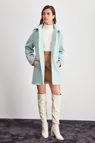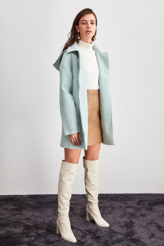 Hooded Button Closure Woolen Coat