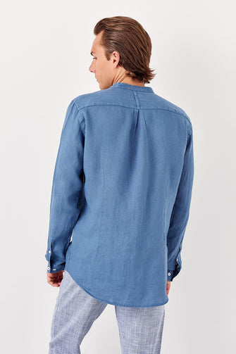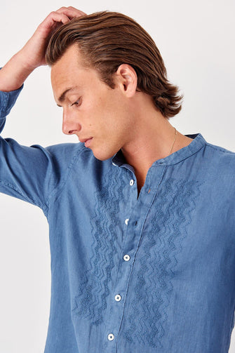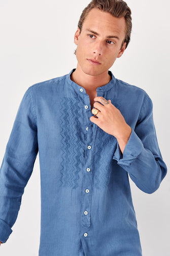Indigo Men Embroidered Linen Crew Neck New Shirt