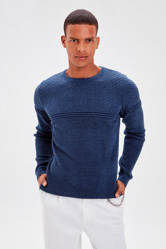 Indigo Men Textured Panelli Bike Collar Knitwear Sweater New