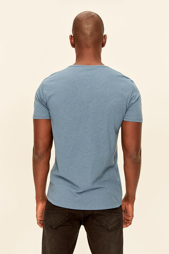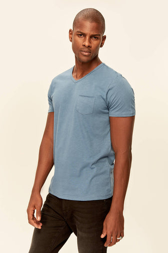 Indigo Presser T-Shirt - Slim Fit Short Sleeve V Neck Pocket Detail