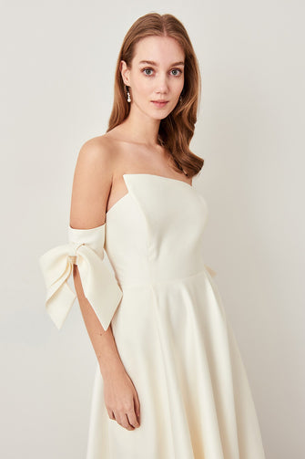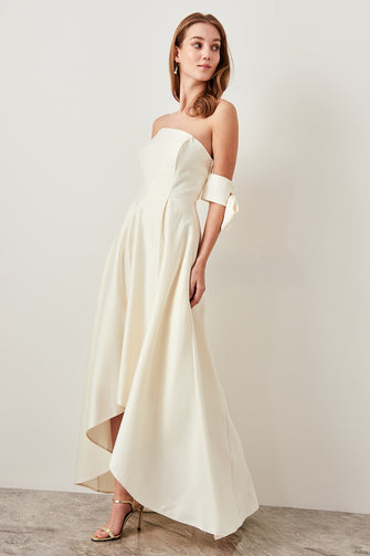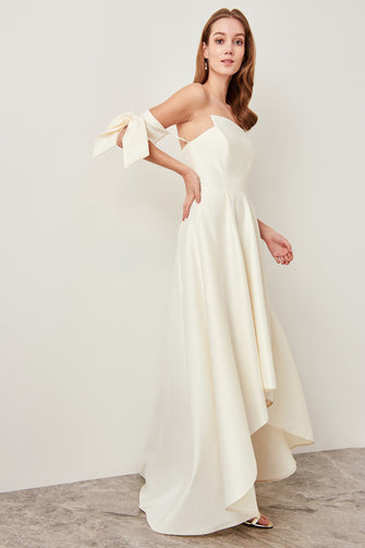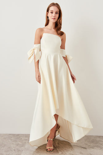 Ivory Off shoulder Evening Dress Slit Detailed