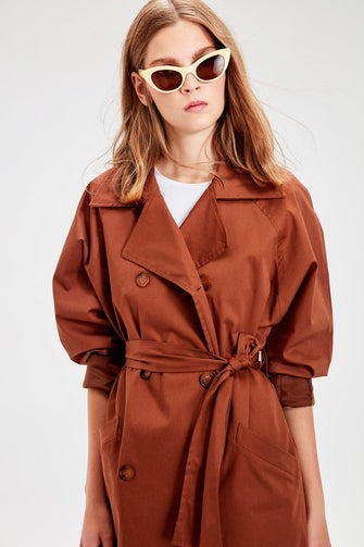 Trendyol Kahverengi Kemerli Midi Trench Coat TWOAW20TR0015