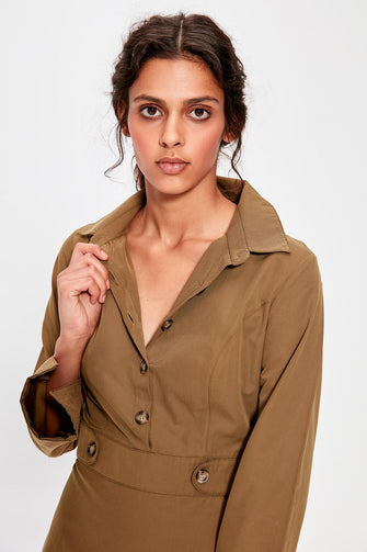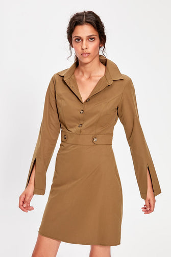 Khaki Button Dress