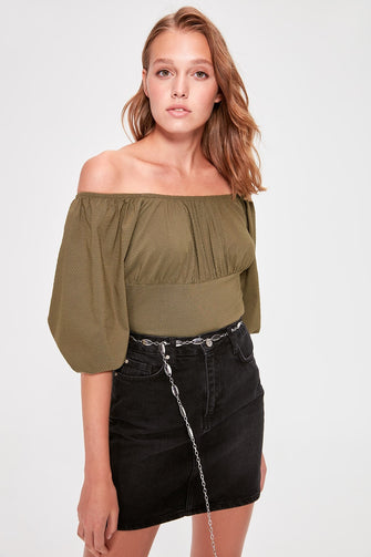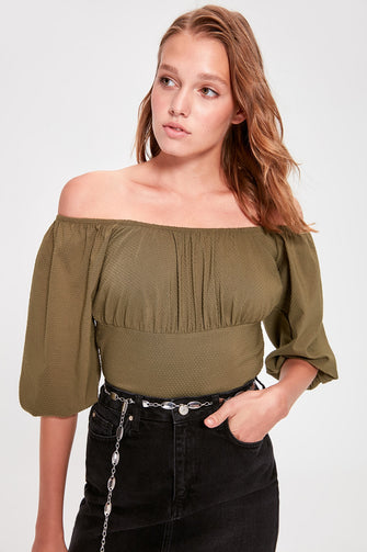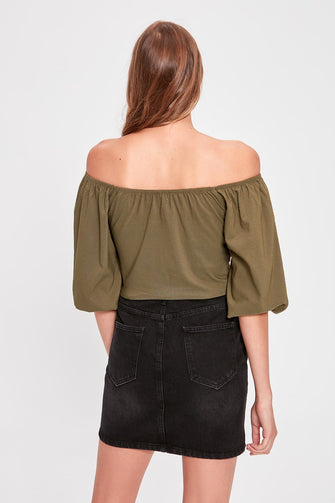 Khaki Crop Top Blouse