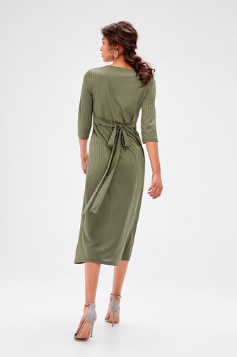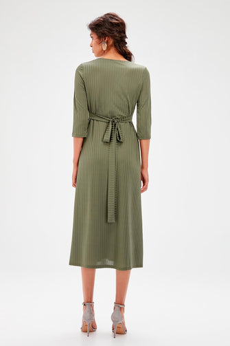 Khaki Double Breasted Collar Dress