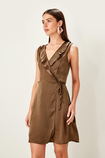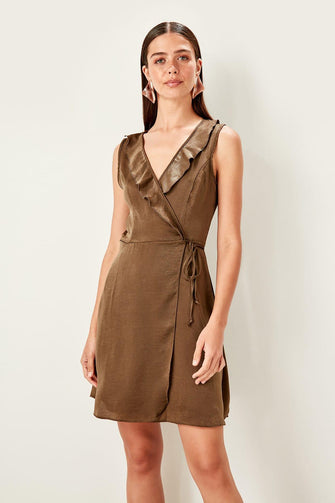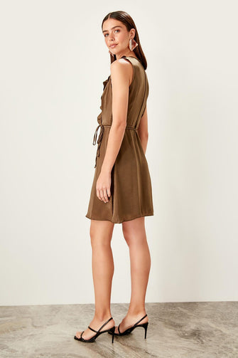 Khaki Double Breasted Collar Dress
