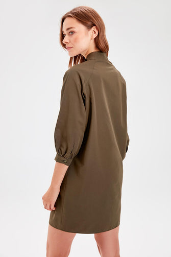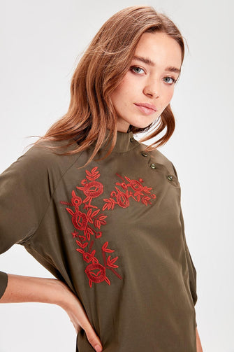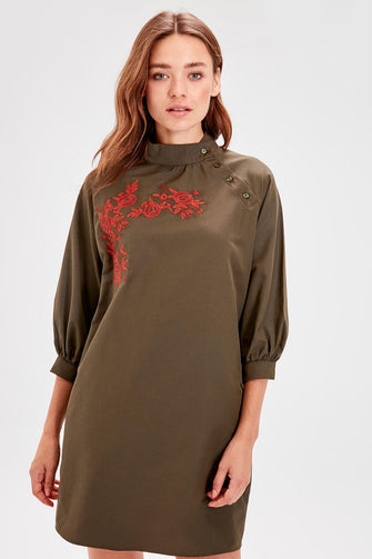 Khaki Flower Embroidered Dress