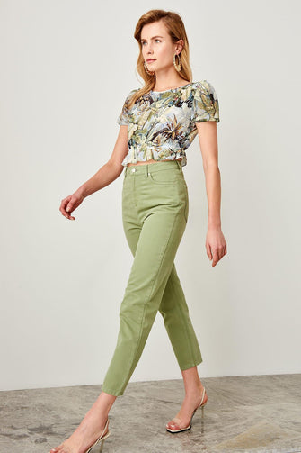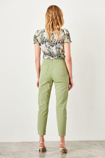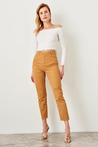 Khaki High Waist Ankle Length Mom Jeans Classic For Women