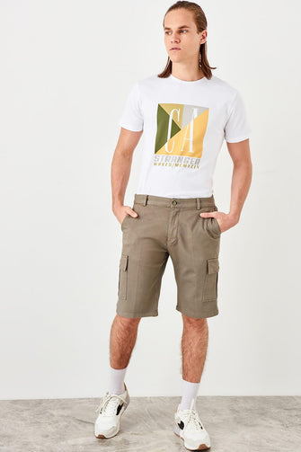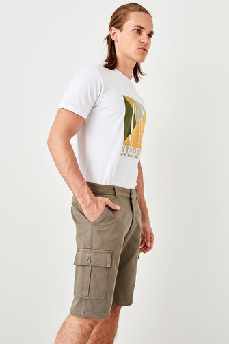 Khaki Male Flap Patch Pockets Shorts