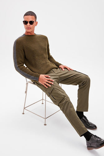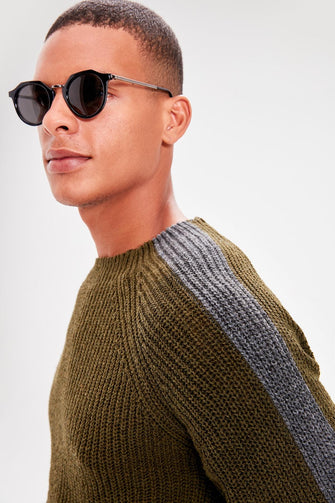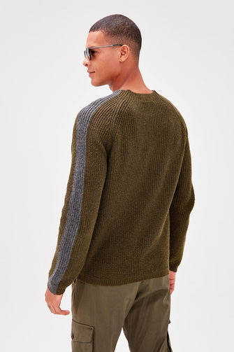 Khaki Men 'S Bike Collar Handle Stripe Knitwear Sweater