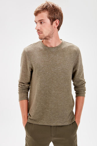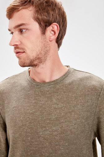 Khaki Men 'S Bike Collar Long Sleeve New Sweater