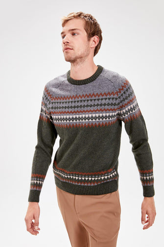 Khaki Men 'S Bike Collar Raglan Sleeve Sweater Pullover New