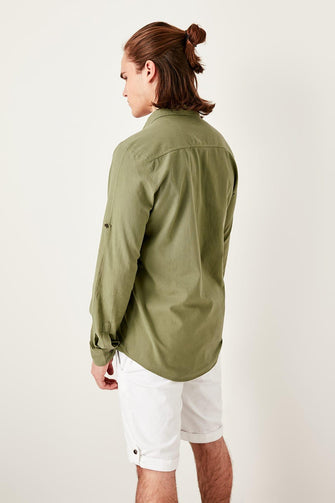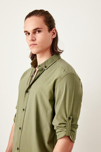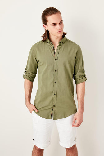 Khaki Men 'S Button Collar Long Sleeve Basic Slim Fit Shirt