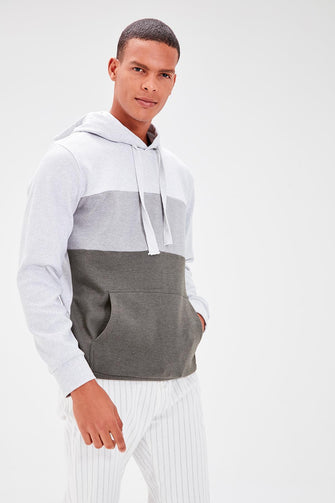 Khaki Men 'S Long-Sleeved Hooded Kangaroo Pocket New Sweatshirt