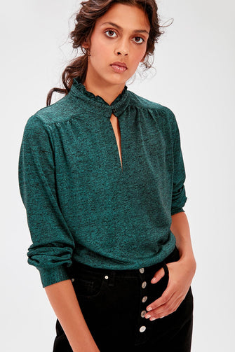 Khaki Right Collar Knitted Blouse