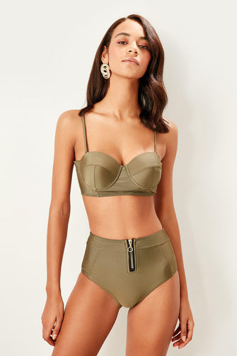 Khaki Zipper Detailed Bikini Six