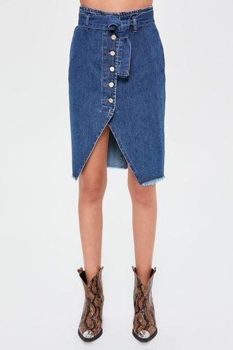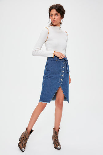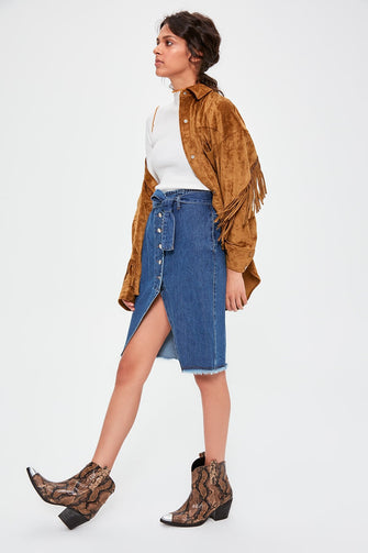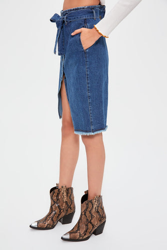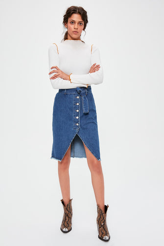 Trendyol Lacing Blue Detailed Denim Skirt TWOAW20ET0146