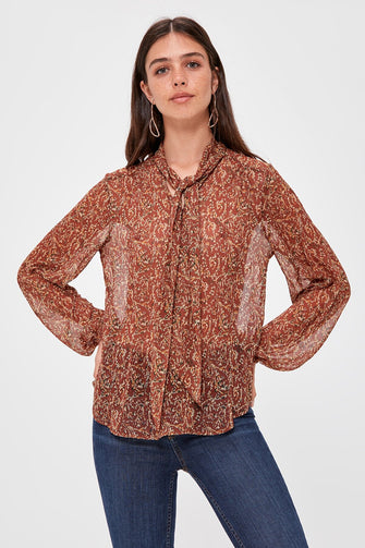 Lacing Detailed Gauze Shirt