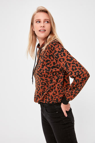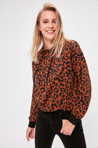 Leopard Pattern Knitted Sweatshirt