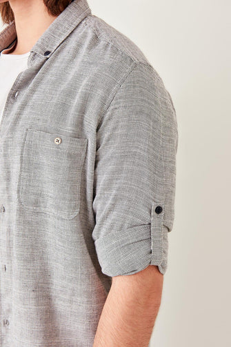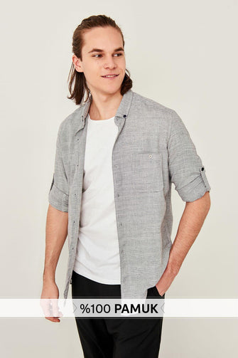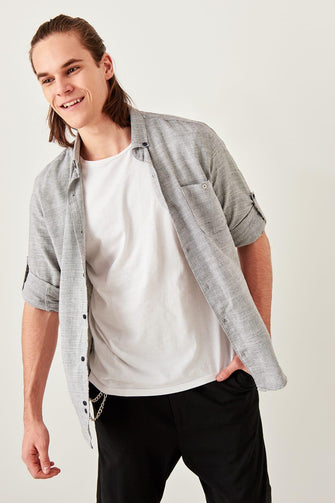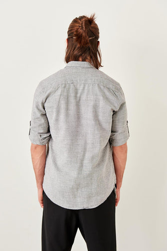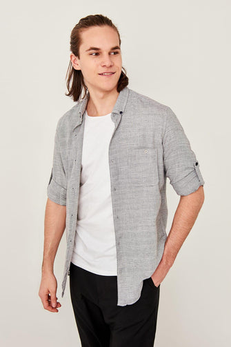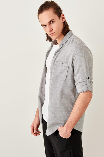 Light Blue Men Slim Fit Single Pocket Epaulets Shirt