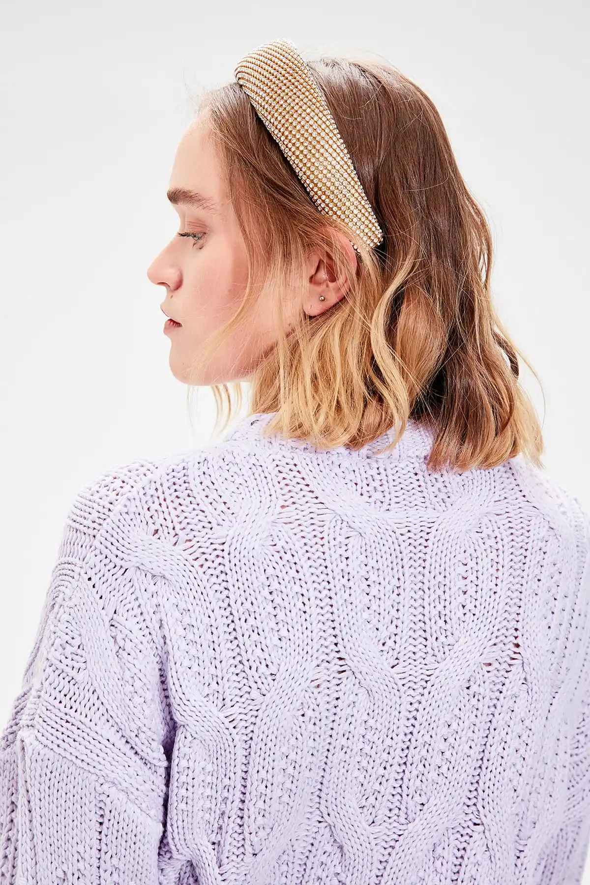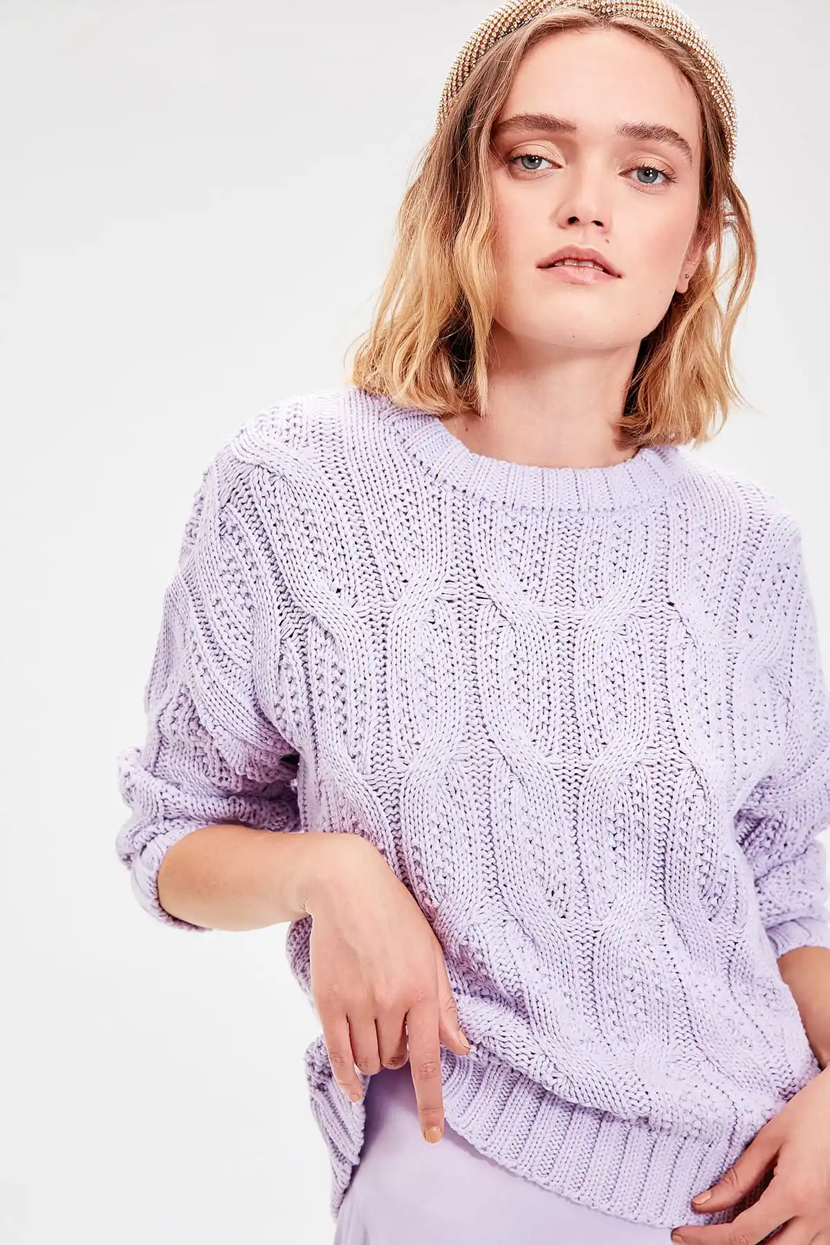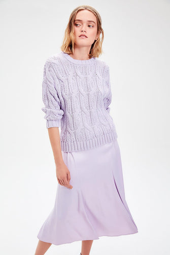 Lilac Hair Braided Knitwear Sweater
