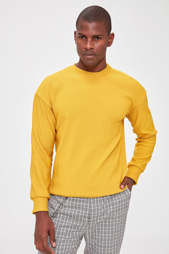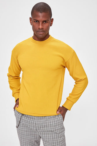Male Bike Collar Long Sleeve Textured New Sweatshirt