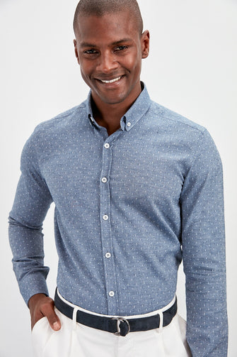 Male Button Collar Slim Fit Pattern New Shirt