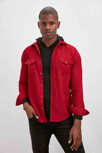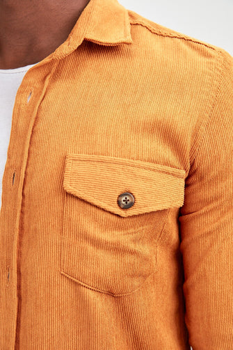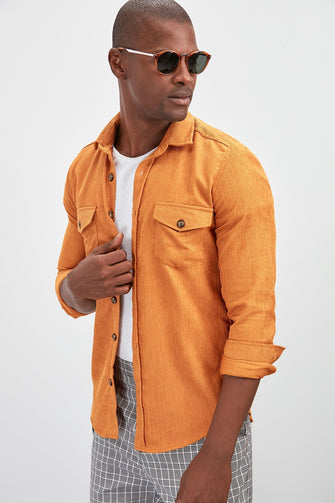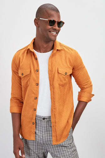 Male Corduroy Double Pocket Clamshell Slim Fit Shirt New