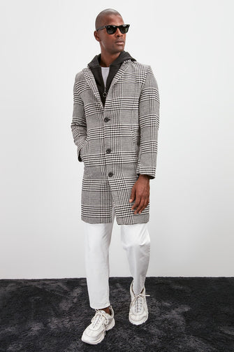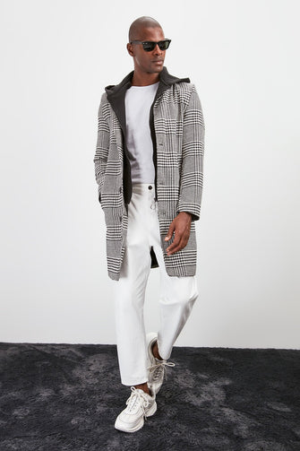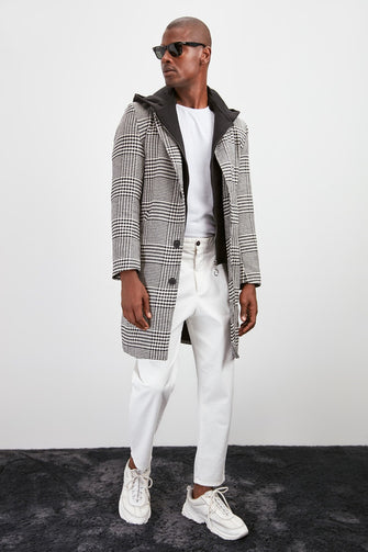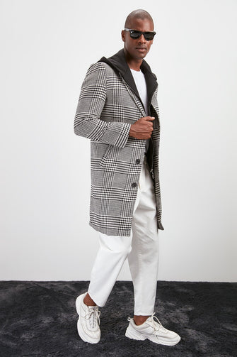 Male Crow's feet Decorated Internally Hooded Coat New