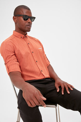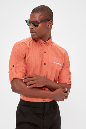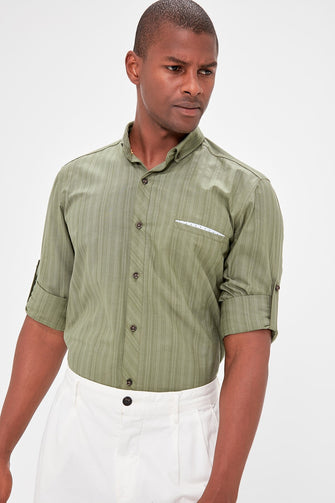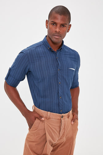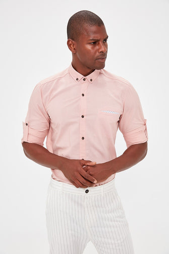 Male Fillet Mobile Button Collar Slim Fit Shirt