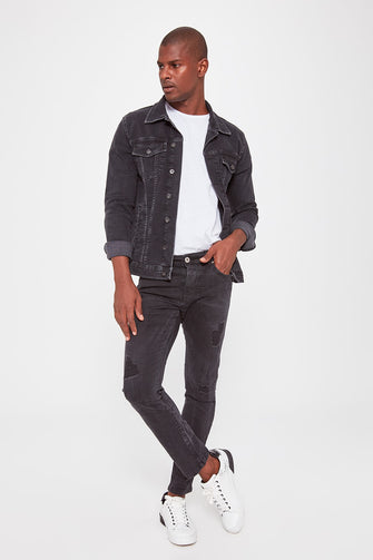 Male Ripped Denim Skinny Fit Flexible Fabric Denim Pants Jeans New